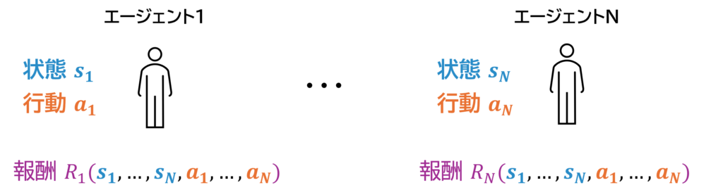 - 各エージェントは自分の報酬関数すらも知らない場合がある