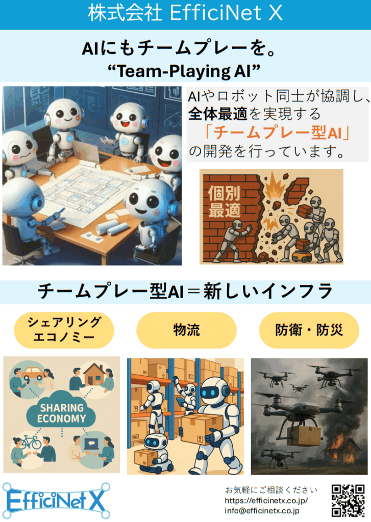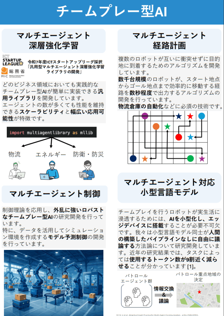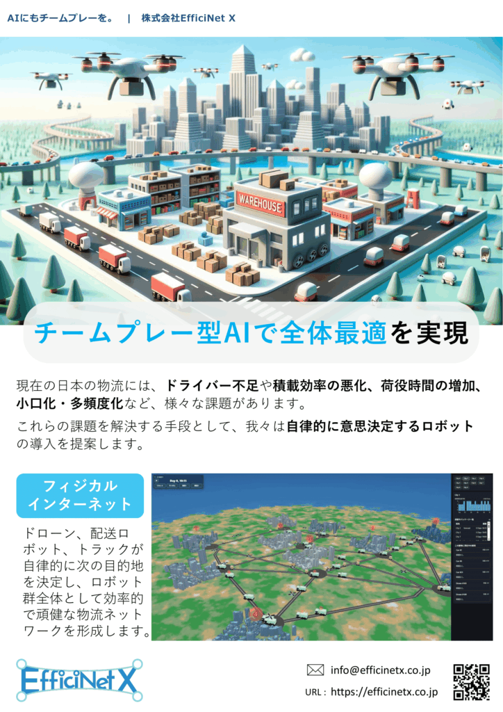 本展示では、弊社が推進する「チームプレー型AI」の例として「フィジカルインターネット」のデモを発表いたしました。